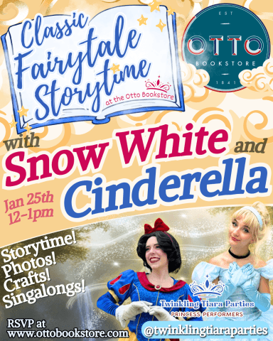 Join us on Sunday, January 25th from 12–1 PM for a Classic Fairytales Storytime featuring Snow White & Cinderella at The Otto Bookstore!