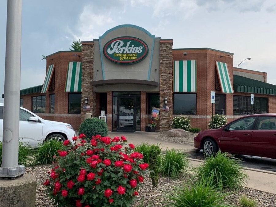 Perkins Restaurant and Bakery is a casual dining restaurant chain which serves breakfast throughout the day, including pancakes. Perkins pastries are baked fresh daily.